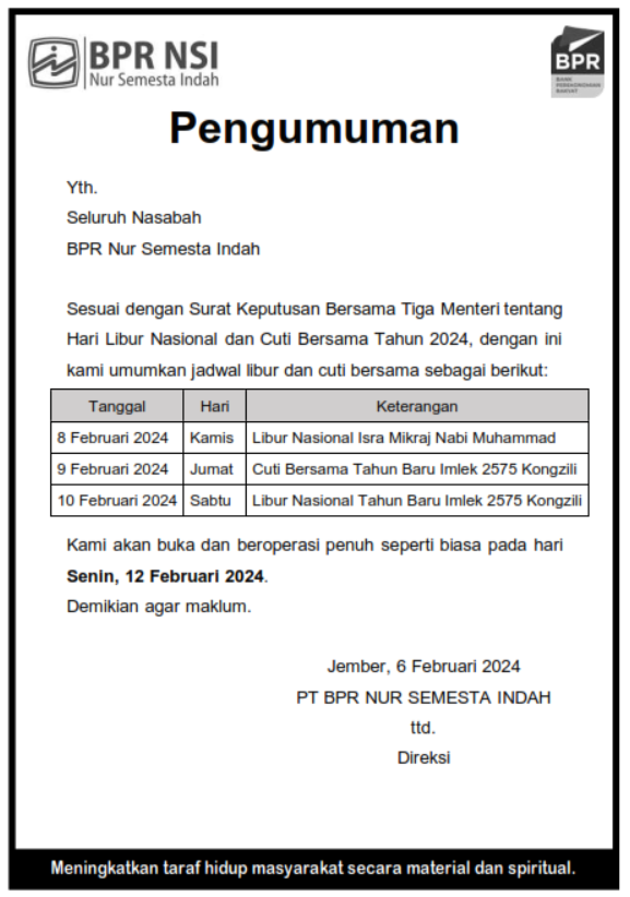 Pengumuman Operasional Kantor