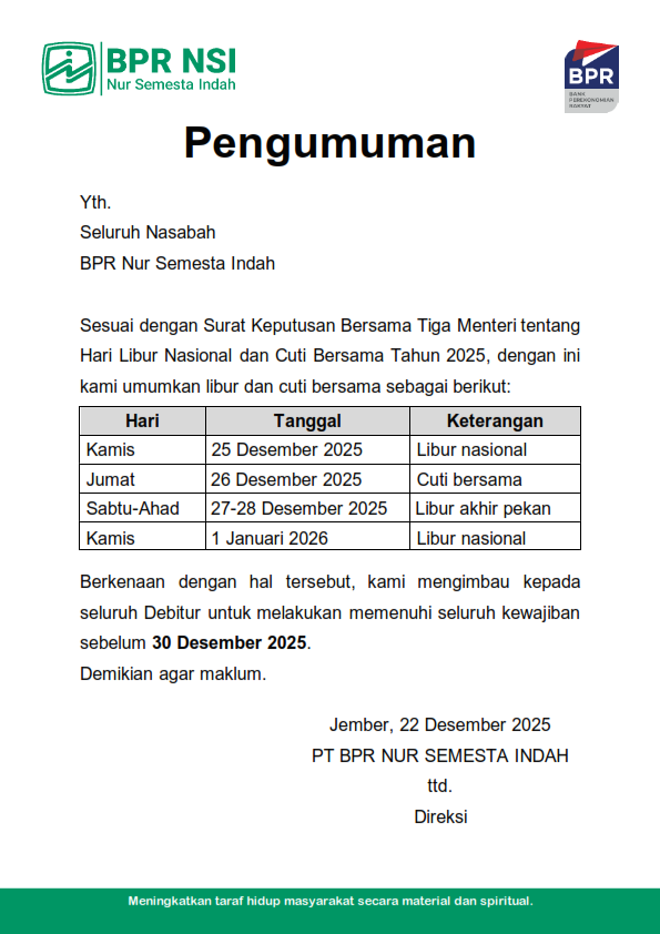 Pengumuman Operasional Kantor
