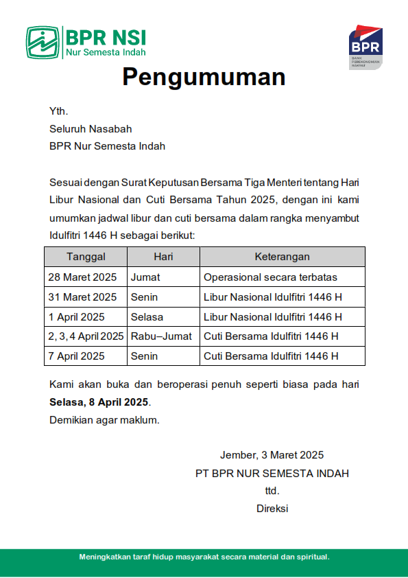 Kegiatan Halalbihalal 2022 BPR Nur Semesta Indah